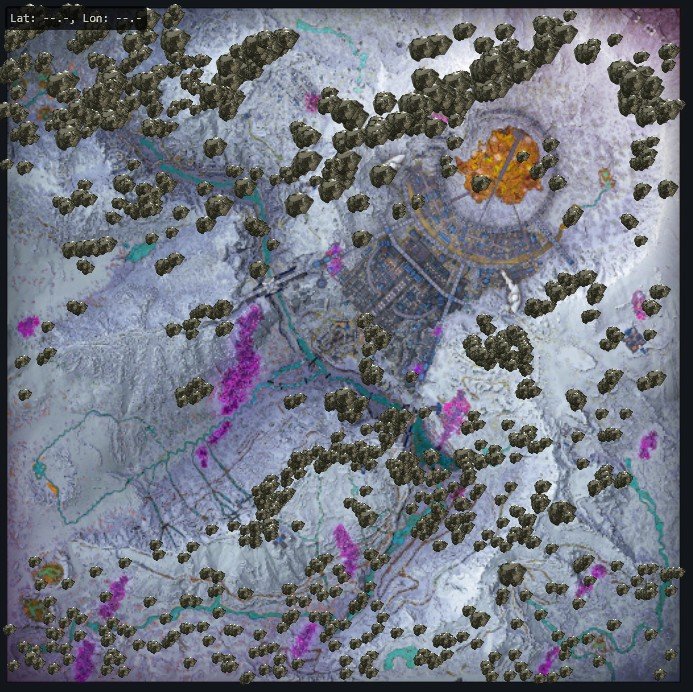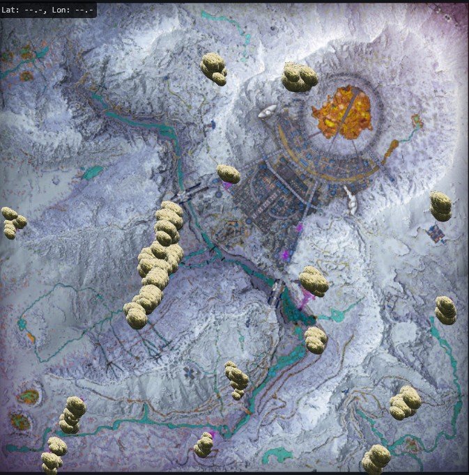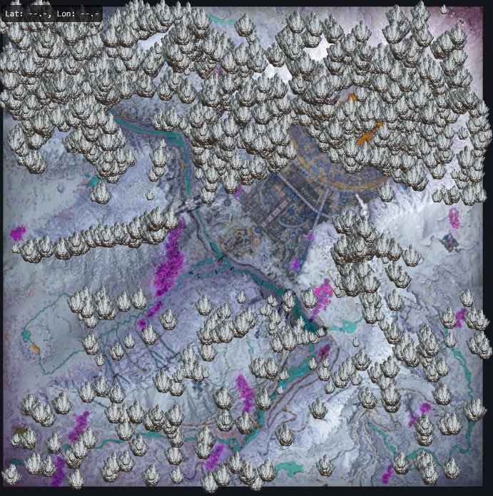 For this guide, we are using the map created by Wikkily.gg, which created a custom map showcasing all resource spawn locations and dinosaur spawn locations.