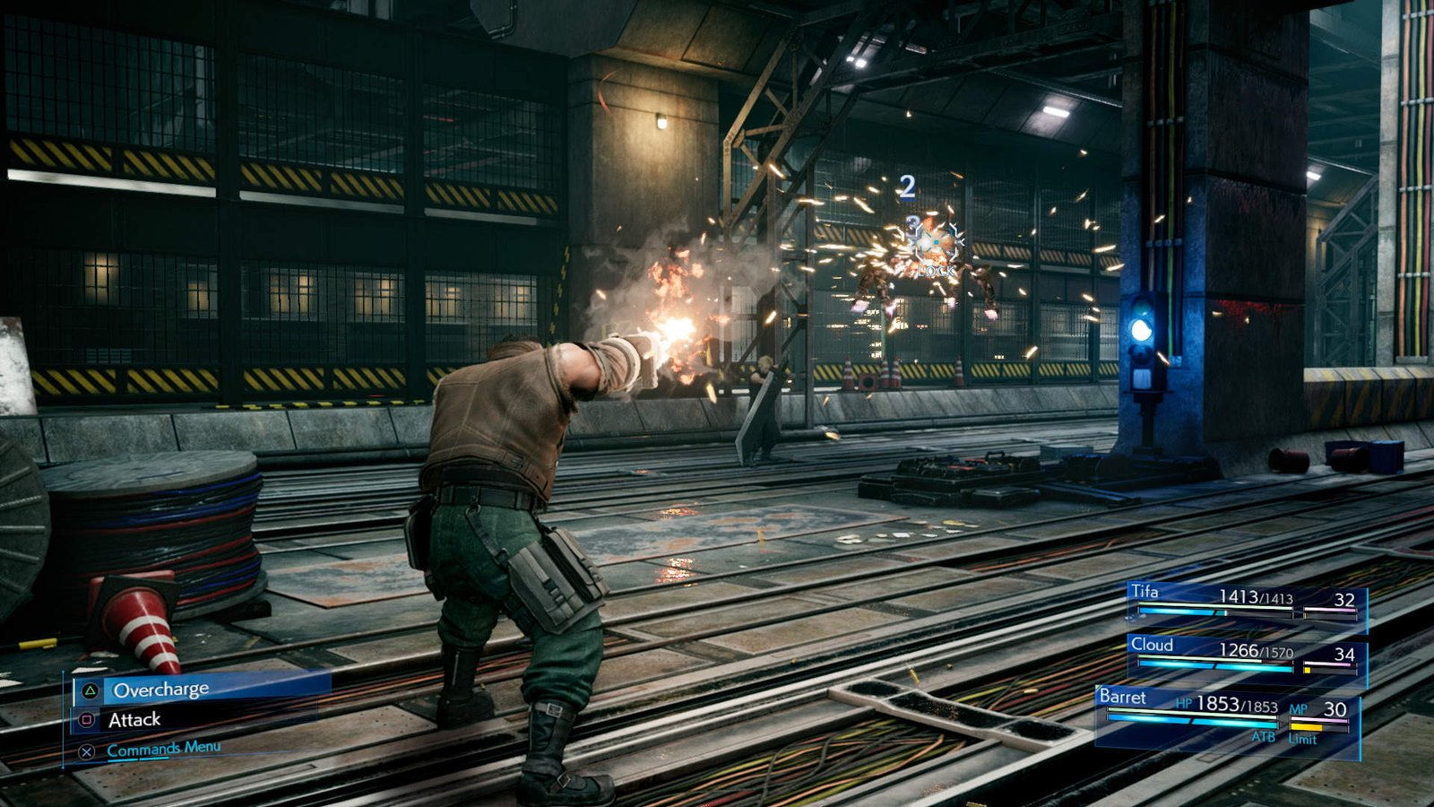 Pressing the triangle button will unleash Barret’s Overcharge attack which fills a large portion of his ATB gauge and is also much more powerful than his normal shots. After every use, the Overcharge attack must be recharged before you can use it again. If you want to use the attack quickly, you can press Triangle again to speed up the process. Once the ATB gauge is filled, Barret can use his special abilities such as the Focused Shot or Lifesaver.