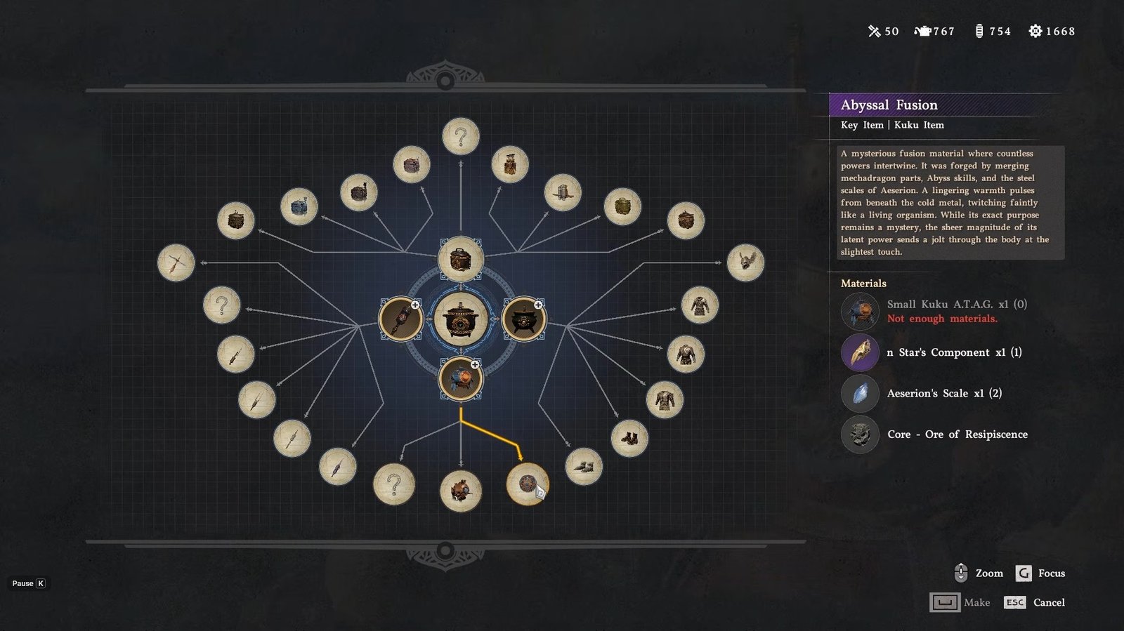 At this point, the recipe for the Abyssal Fusion armor becomes available, but you will first need to craft a required component, which is the Kukoo Pot.