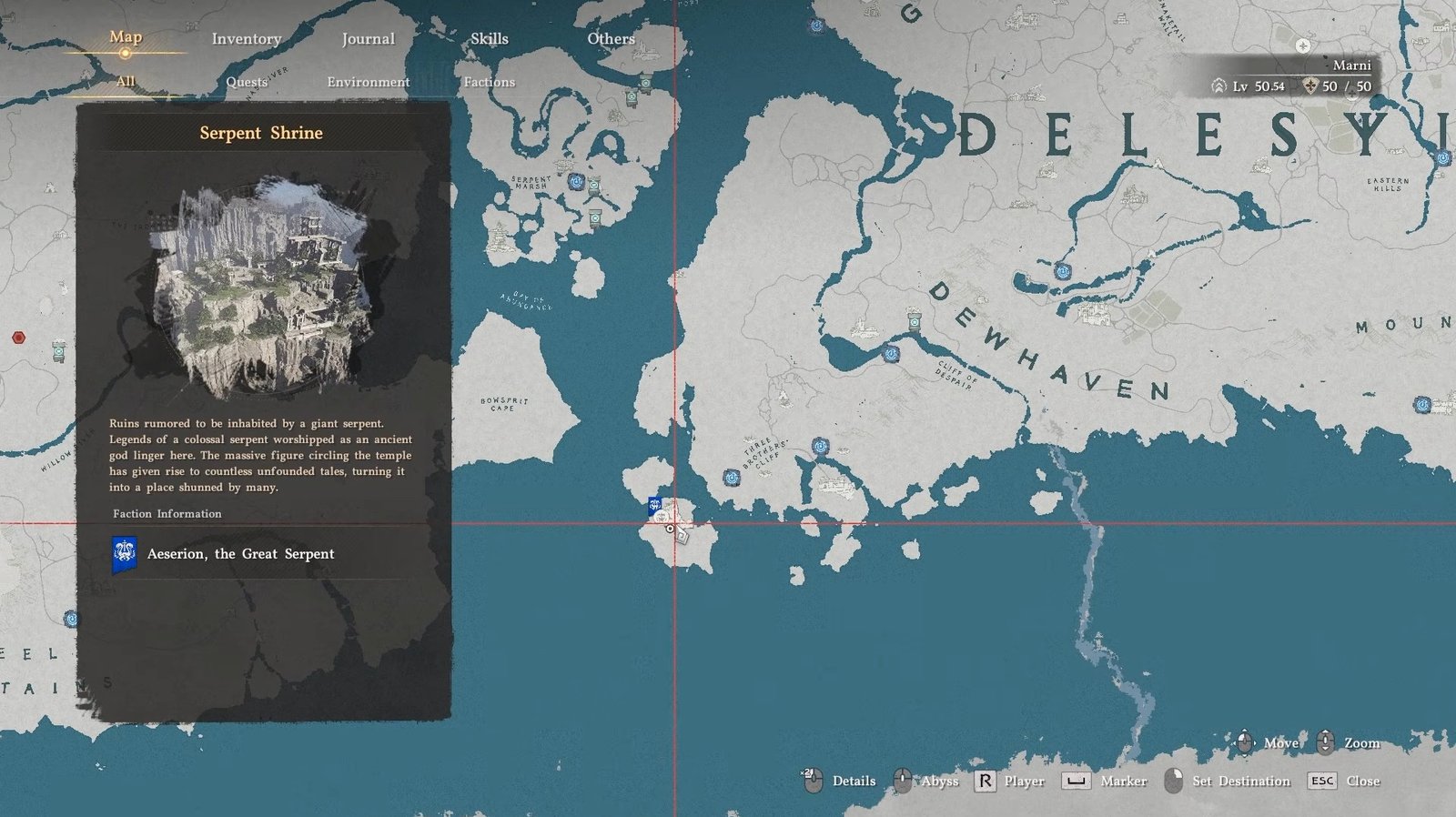 One of the more hidden materials is Aeserion’s Scale. To get it, travel to the Serpent Shrine located in the lower-left area of Delesyia. Here, you will find a large serpent moving around the region.