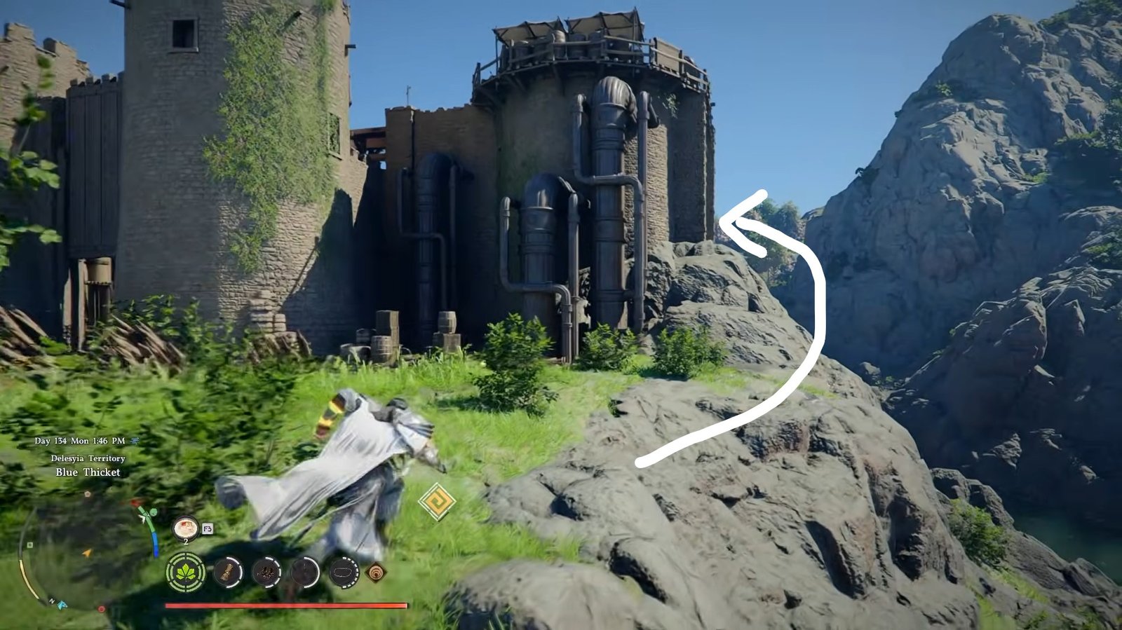 For the main armor piece, you will need to enter the castle in Delesyia. However, you can’t just walk in freely. If you try to cross the bridge without preparation, you will get stopped.