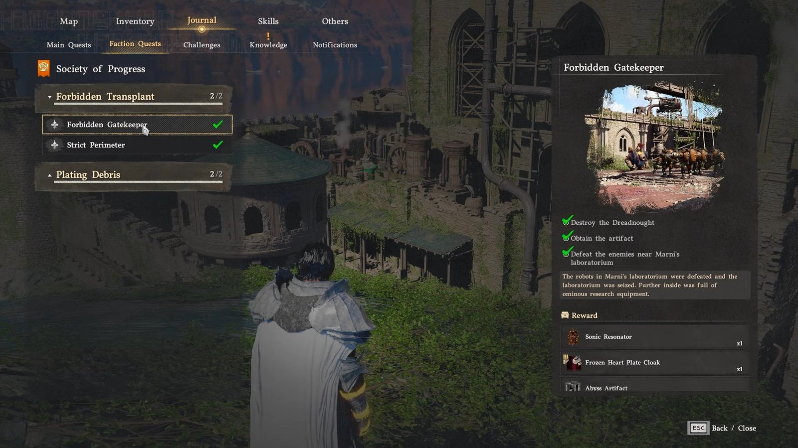 During this quest chain, you will encounter a mission involving a powerful enemy called the Dreadnaught. This fight takes place near Marni’s Laboratorium. Defeating this boss and completing the quest rewards you with the Frozen Heart Plate Cloak.
