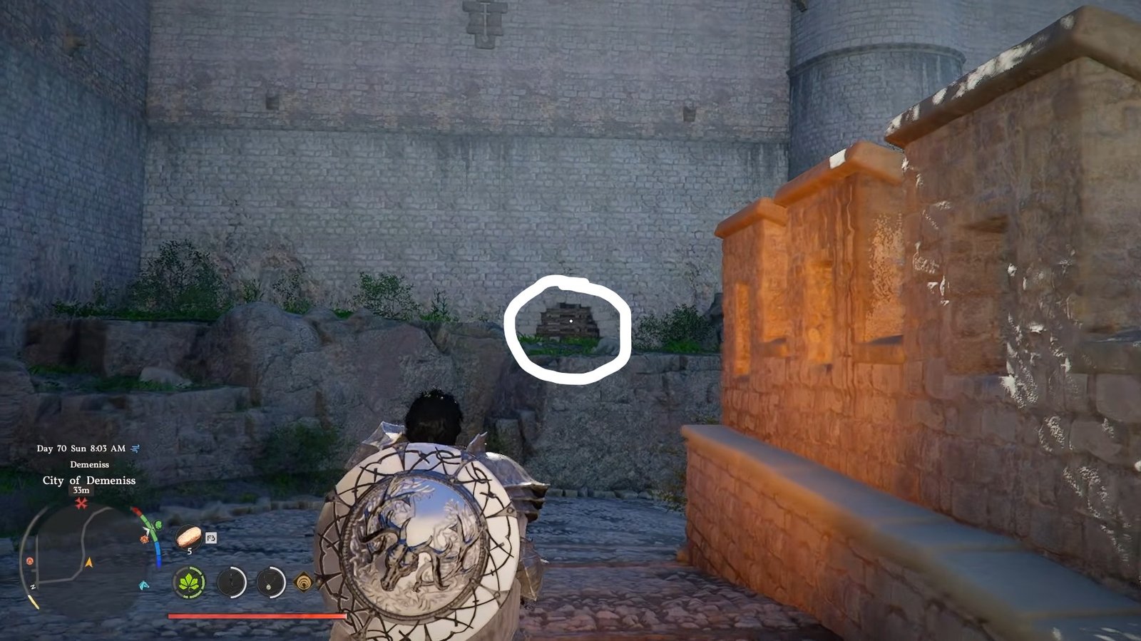 To get the gloves, head to the Demeniss area where a hidden entrance is tucked inside a building.