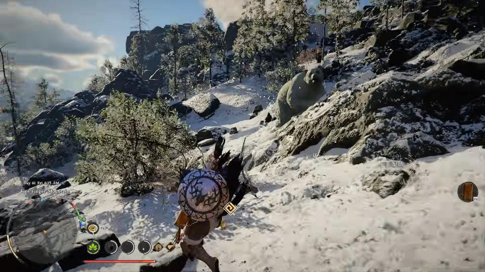 The environment is snowy and wide, so spotting the bear can take a bit of time. Once you find it, be ready. Because the fight starts almost immediately.