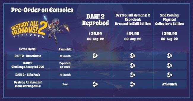 If you pre-order the game, you will instantly be rewarded with the multiplayer, stand-alone spin-off Destroy All Humans, Clone Carnage. This spin-off lets 4 players wreak havoc online or 2 players that can destroy in local multiplayer. Clone Carnage is also available for separate purchase on PC, PlayStation 4, PlayStation 5, Xbox One, Xbox Series X|S, and PC for $12.99.