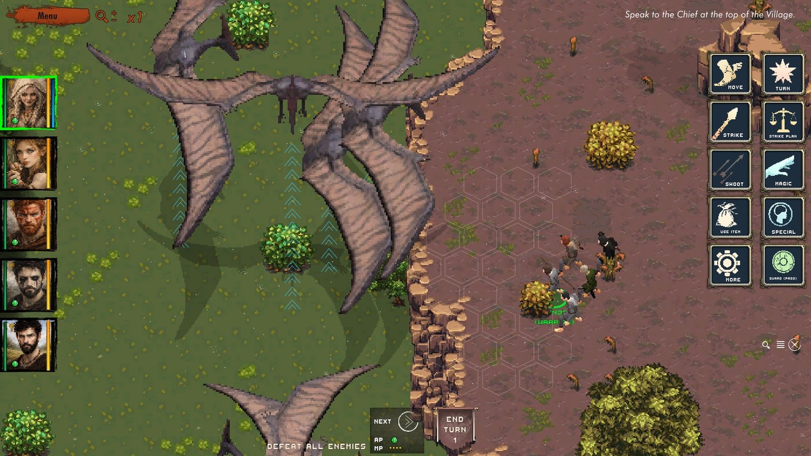 Its gameplay is built around turn-based tactical combat, with an emphasis on positioning, terrain, and encounter planning. Players control a mix of warriors, magic users, and dinosaur allies, with battles designed to support multiple approaches, including direct combat, stealth, and environmental interaction. Dinosaurs play a central role not just as enemies, but as mounts and controllable units, each offering distinct abilities that influence combat strategies.