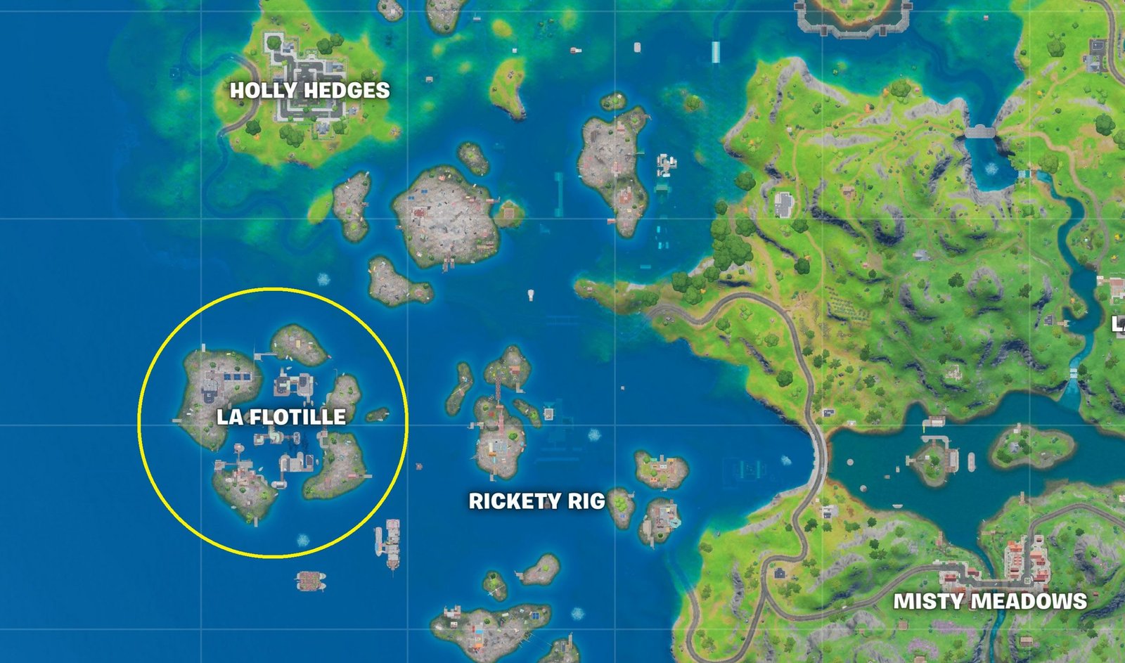 This challenge requires you to go to a new location on the map. As you may have noticed, Season 3 brings along many new islands. One of them is the new location called The Fortilla, which is on the south part of the map, to the left of Rickety Right.