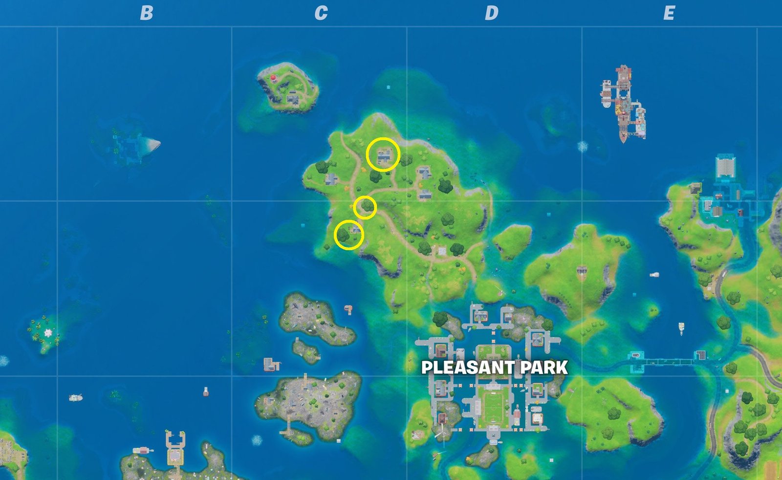 Go to the C2 grid of the map, where you will find a house with a BBQ grill outside, and a gnome standing right in front of it. The second gnome can be found behind towards the wooden fence, and then go left where another will be facing a large tree. The last gnome can be found to the left of the last location is a house. Head inside the house and make your way towards the attic where you will find the gnome.