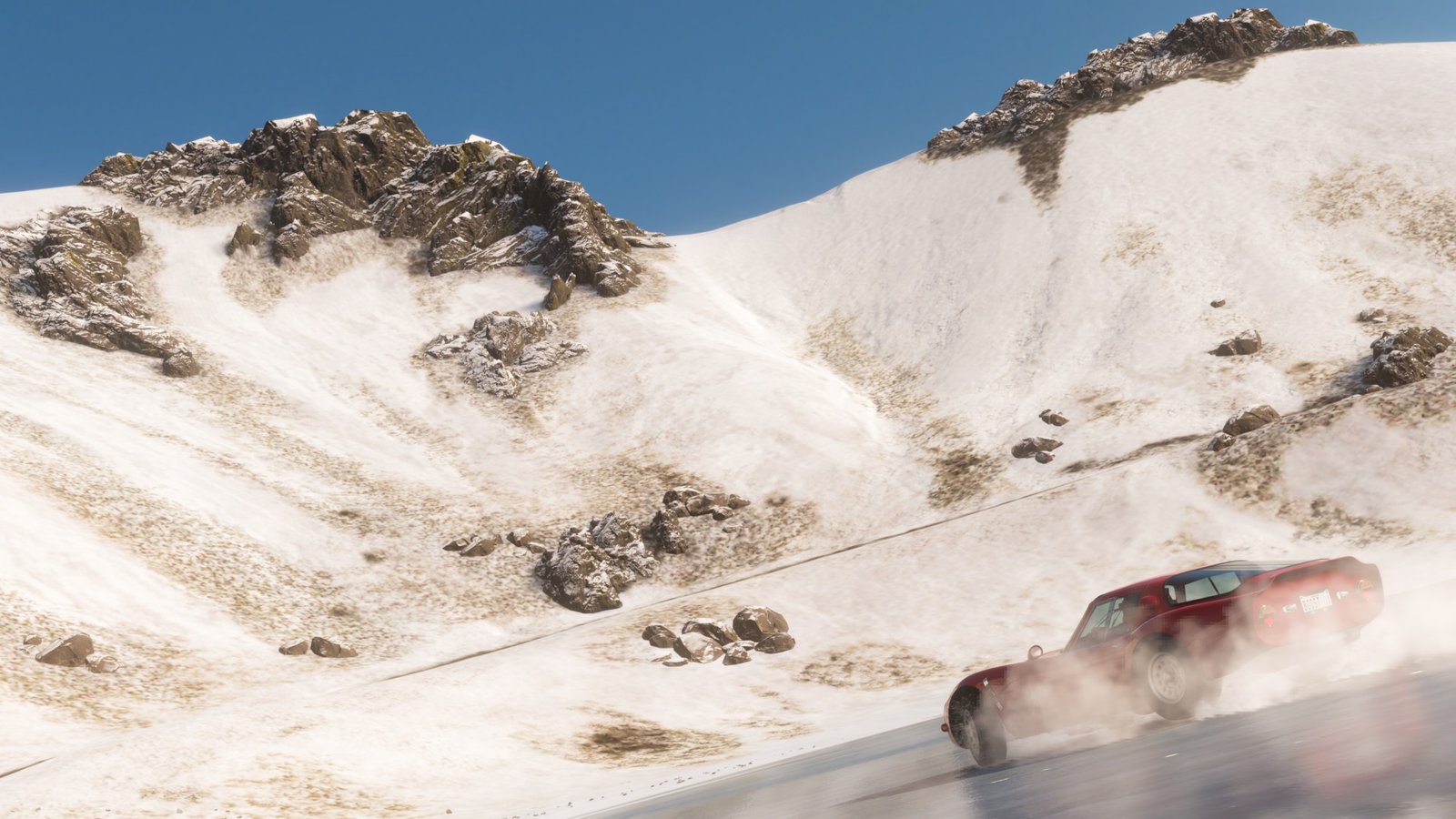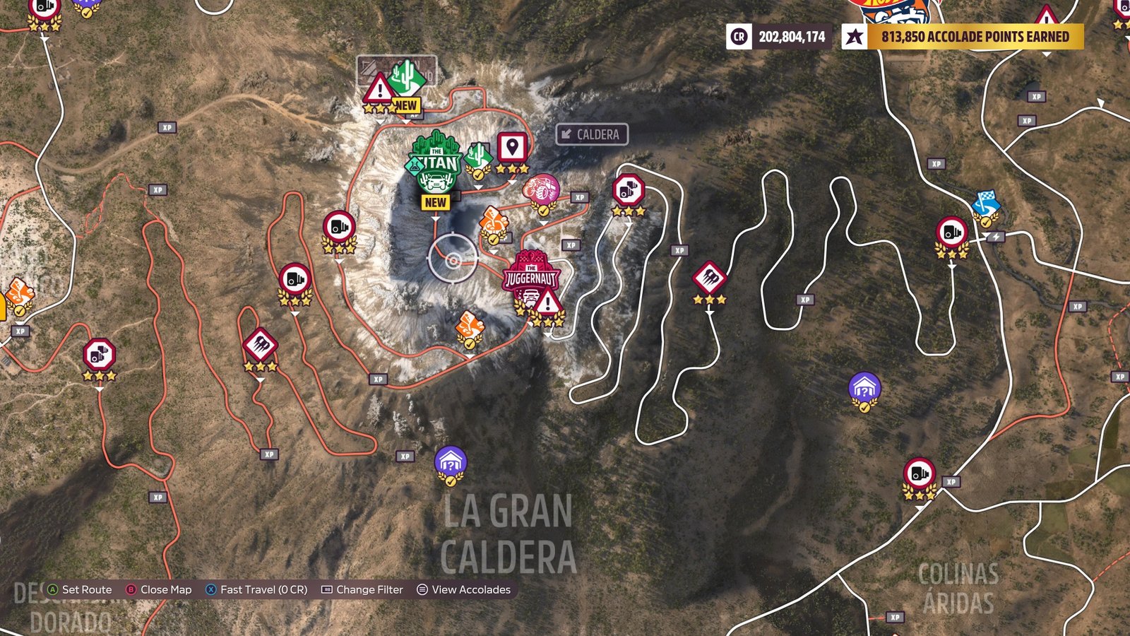 The location requirement for this week’s Photo Challenge is the Frozen Lake at the top of Gran Caldera. Gran Caldera is the biggest volcanic mountain in Forza Horizon 5 and you can easily spot it right from the main Horizon Festival Site. It is located right above the Horizon Mexico’s Festival Site marker on the map, so it is fairly easy to spot. Right in the center of this huge mountain, there is a small lake that freezes up during the winter season. To complete this challenge, you need to get to this lake. We have marked its exact location on the map below: