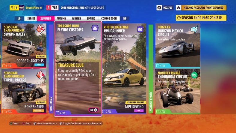 While the picture of Flying Customs Treasure Hunt might be a little deceiving since it shows us a 1963 Chevrolet Corvette Stingray jumping and we might think that this might be yet another Danger Zone however there is jumping involved this time but not from Danger Zone. If you check out the Treasure Clue, it states: ‘Stingrays can fly? Get your coins ready to get up high for a round complete!’. If you read it carefully, you will find the words ‘round complete’ which the announcer says when you complete a round of Horizon Arcade.