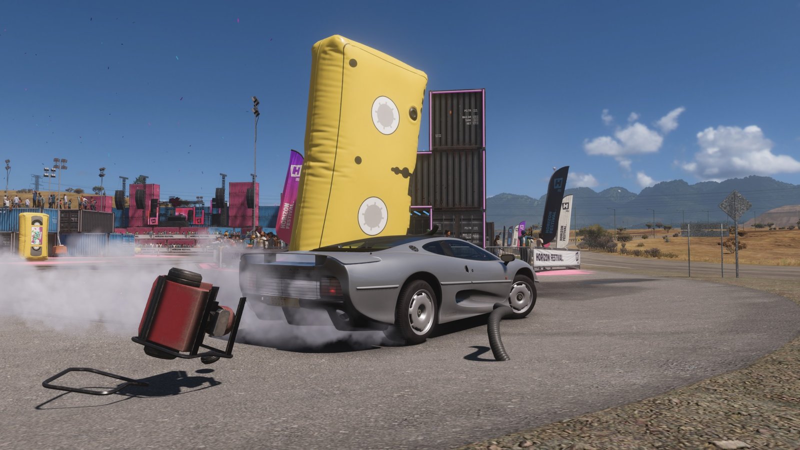 Once you arrive here, you will see that the yellow VHS tapes are found all over the outpost as well as some of the connecting roads adjacent to it. Start smashing by driving through them and once you have smashed 10 of these, you will complete the challenge. There are more than 10 so you can easily complete the challenge within one run. Upon challenge completion, you will be rewarded with 3 Points towards the Festival Playlist completion and the Tape Rewind Car Horn Reward.