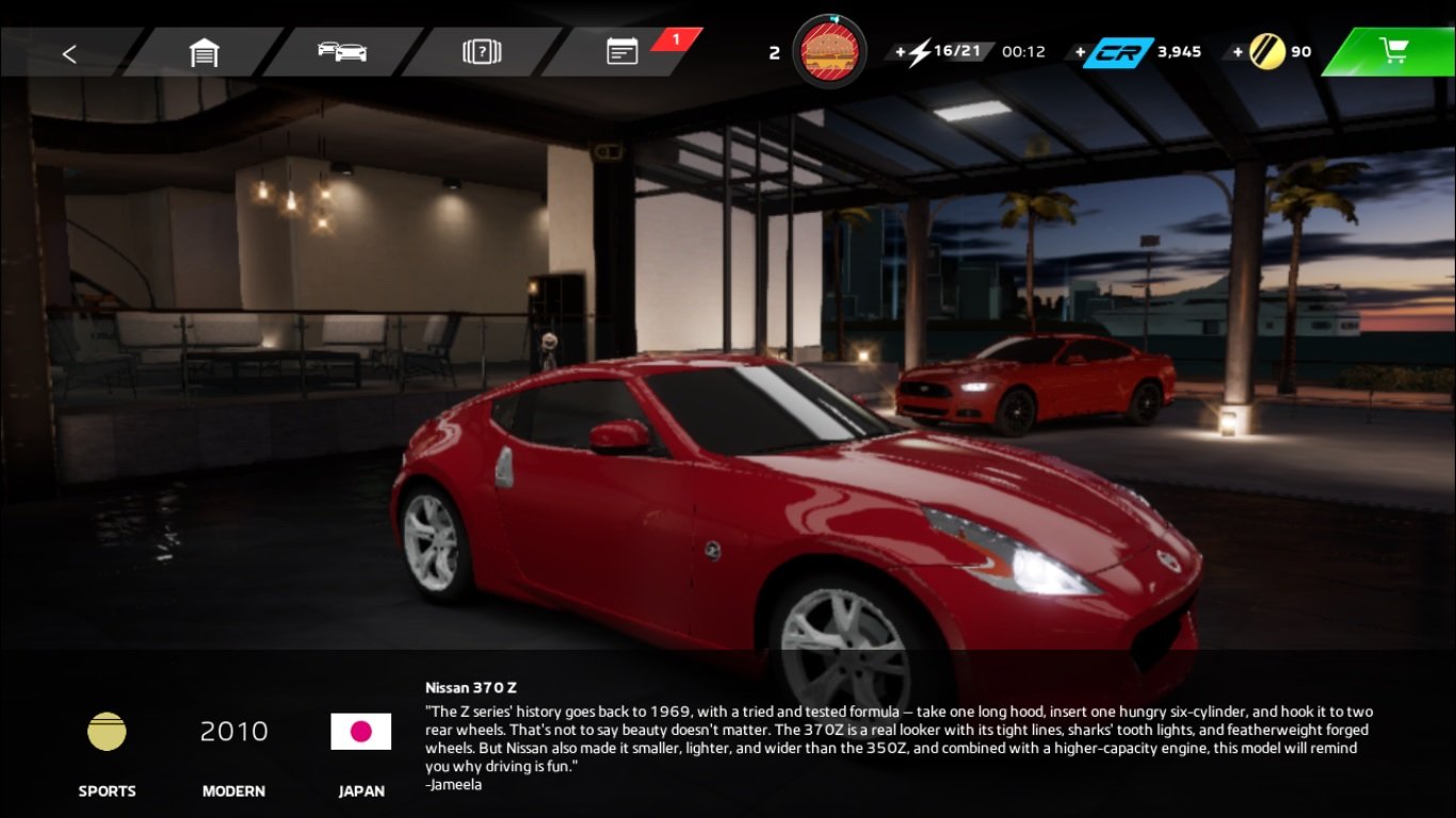 As you play the game, you will unlock more and more cars however you can only have three cars in your lineup for each event. Because of this limitation, I recommend that you keep only three primary cars and keep tuning them. Tuning will need car parts and CR, the in-game money. Tap the tuning icon in the main menu and you will then head into your garage where you can pick the car, choose the parts, and pay in CR to tune it up.