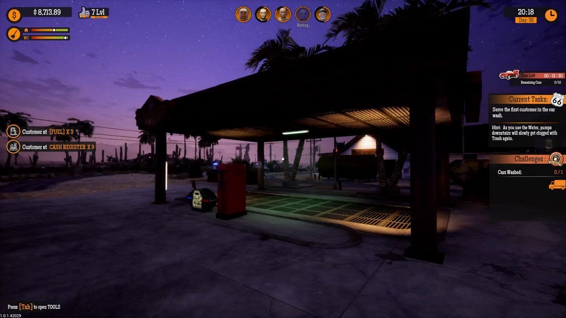 Gas Station Simulator is all about renovating, expanding, and running your own gas station situated along a highway in the middle of an American desert. You will have to clean, fix, paint, decorate, repair, or buy new equipment, start serving your customers, confront all types of different personas with varied expectations.