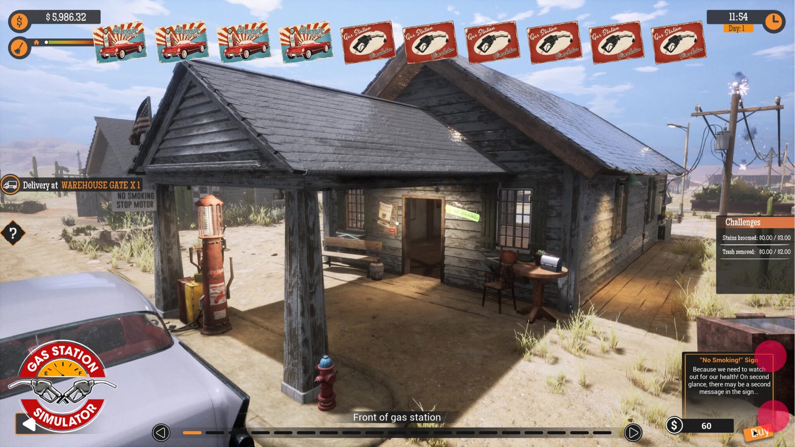 Buy an abandoned gas station and restore it to its full glory. Renovate, upgrade and expand upon the offered services to keep up with your clients demands.