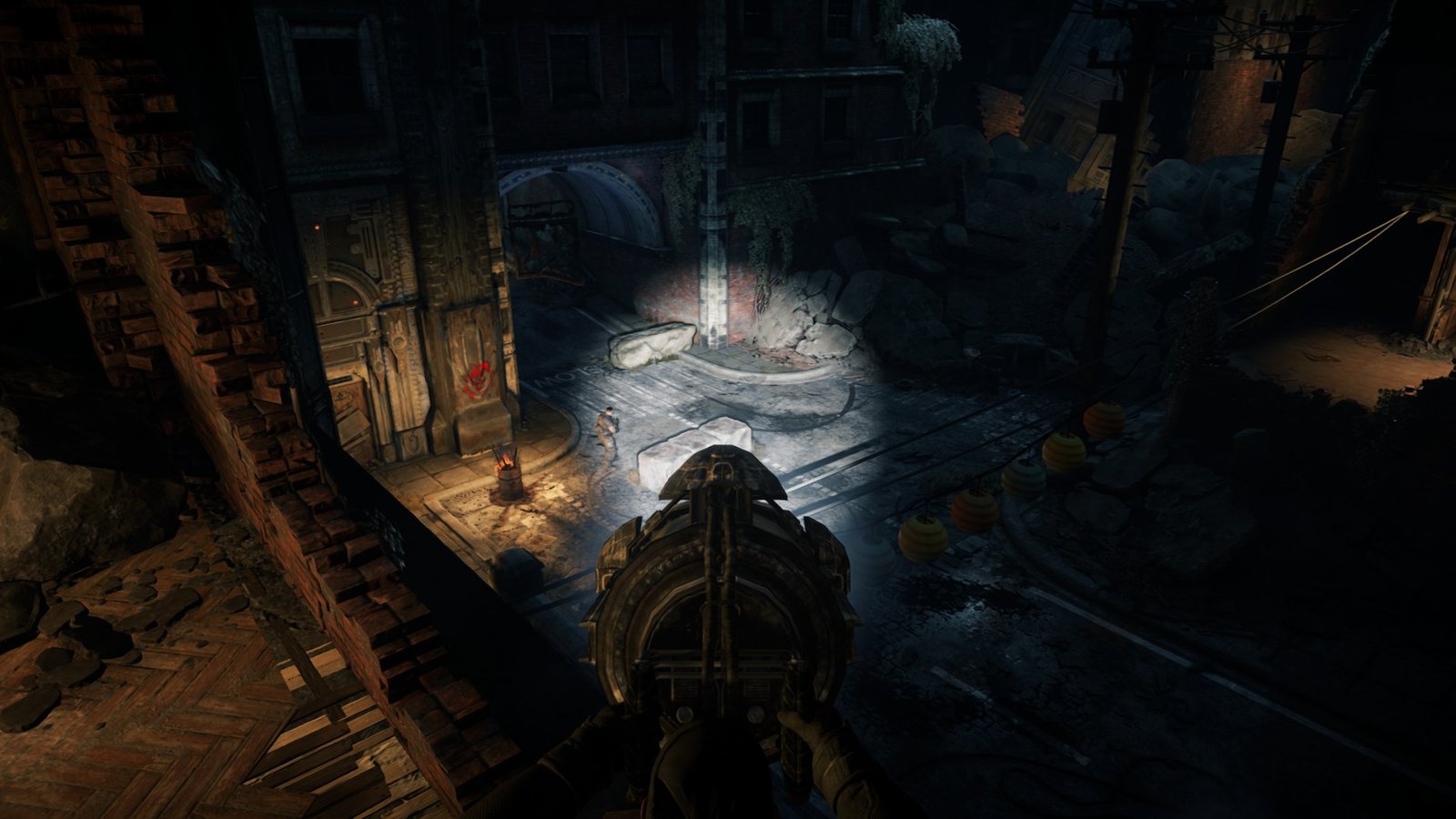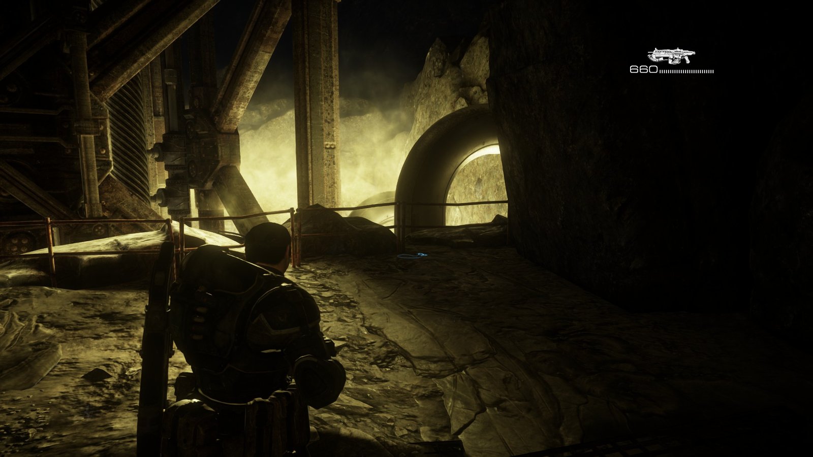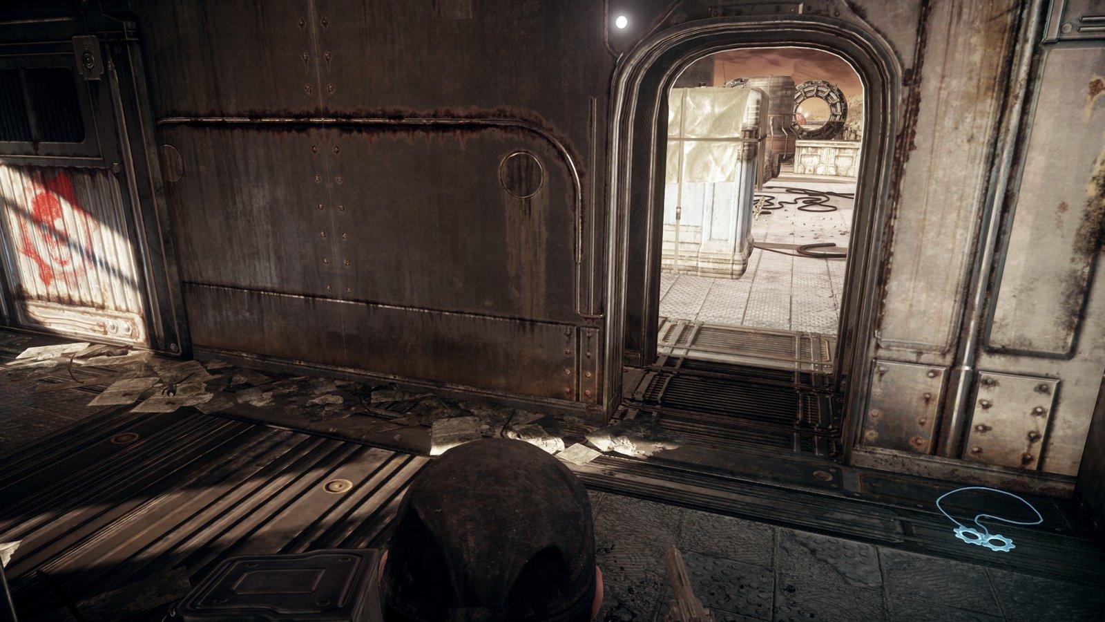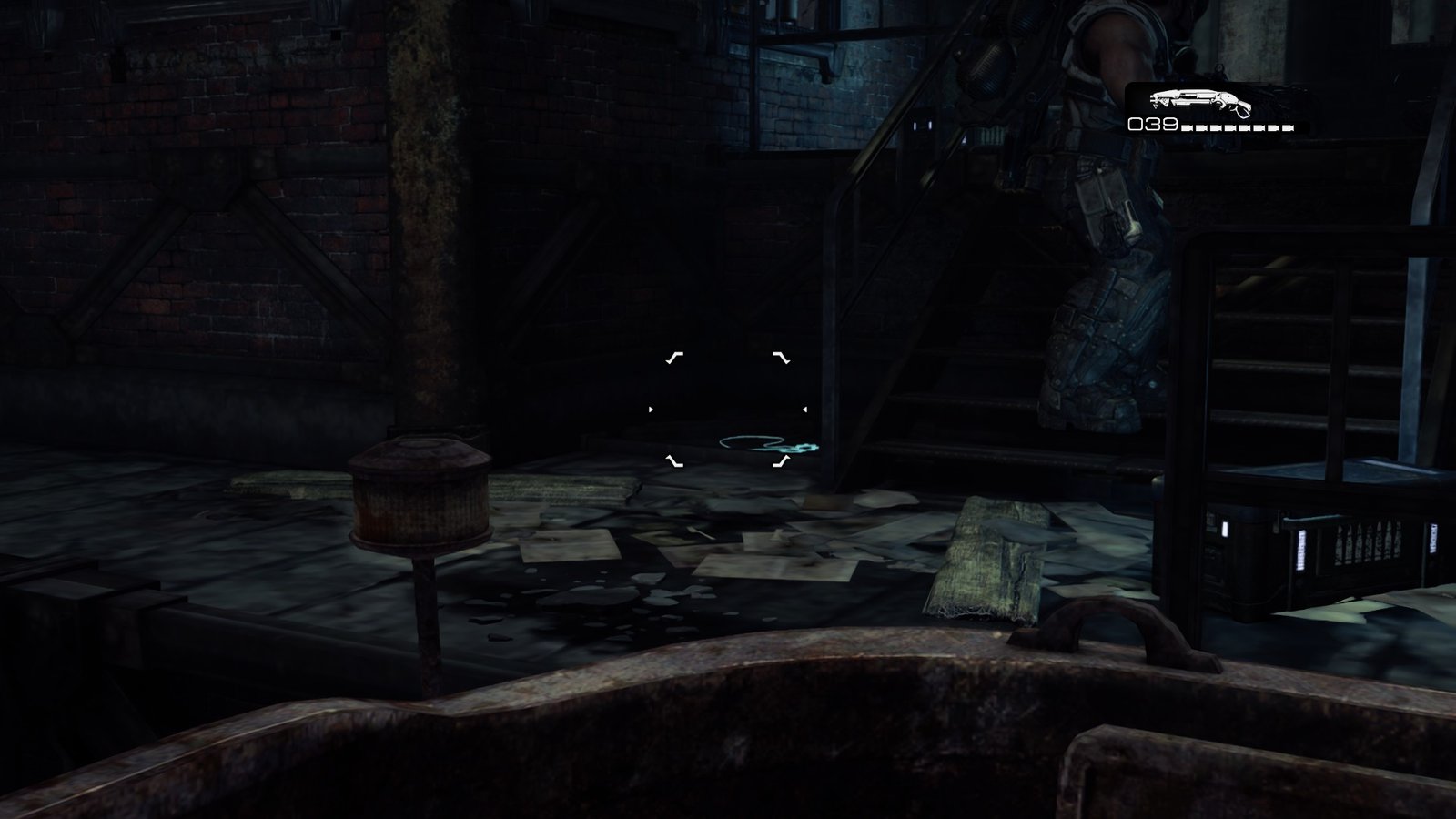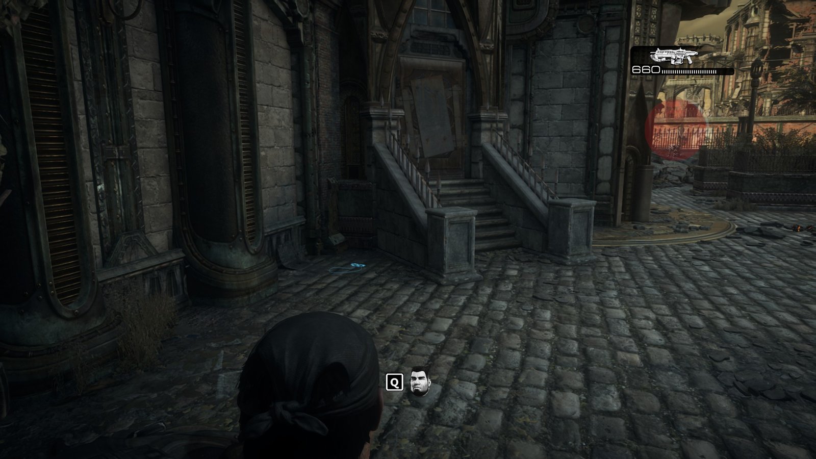 Now go through the door where the Locusts burst through for the gunfight and stick to the left side. Go up the stairs here, and you will find another Cog Tag.