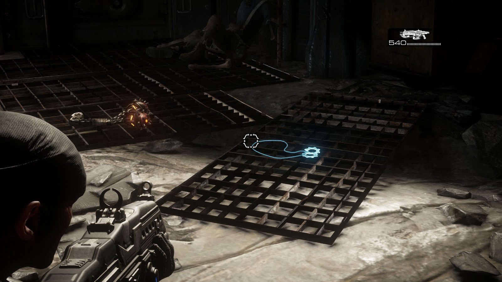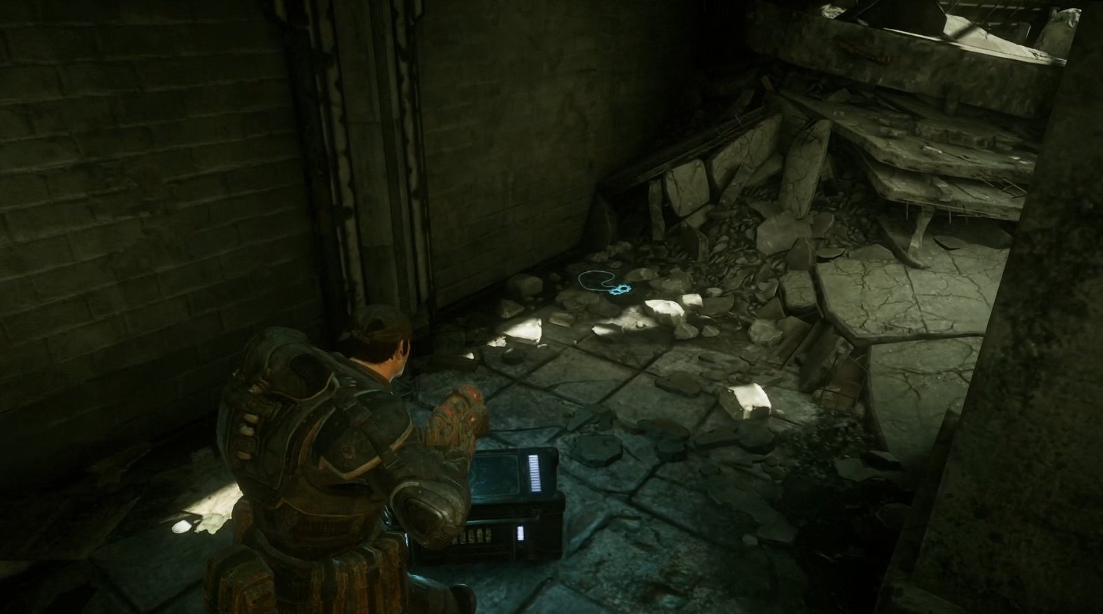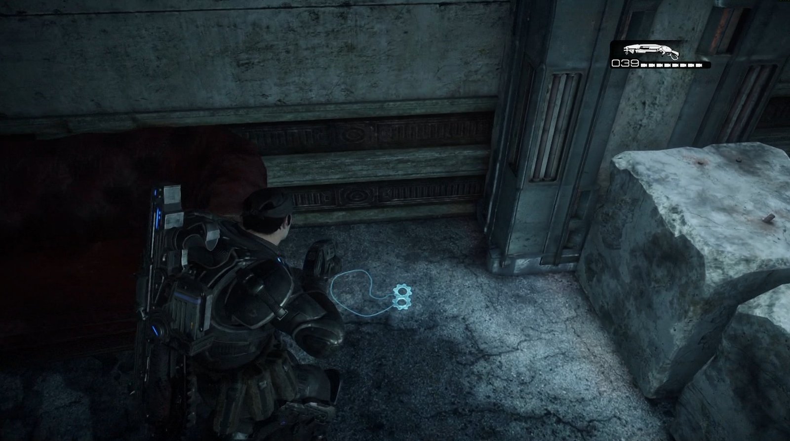 This Cog Tag is an introduction to Cog Tags, and you cannot miss it. Fight the grubs up the stairs, and when you leave the room above, Kim will automatically point towards the Cog Tag and advise you to pick it up so that it can be given back to the families of the fallen. It is hard to miss.