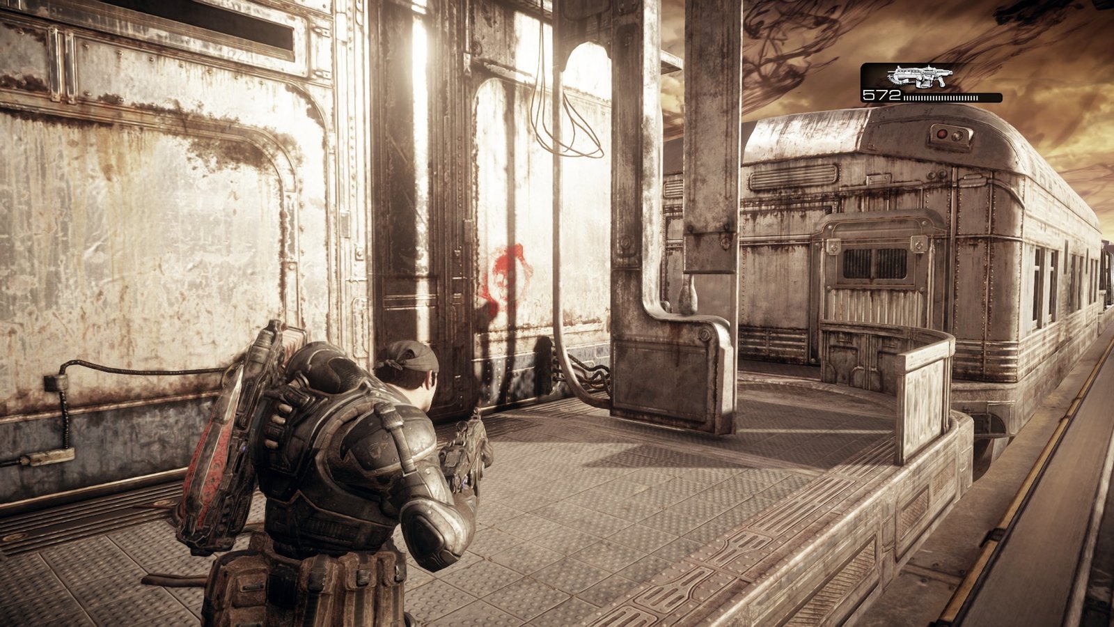The final Cog Tag of the game is sitting inside a train car, which is right after the timed section with the Wretches. When you are safe from the Wretches and the timer goes away, press the green button to proceed further, and then go right to press another green button to open the path. Go ahead, and you will find a Crimson Omen on the train car’s wall. Head inside this train car and open the door at the end to find the Cog Tag sitting inside this small room.
