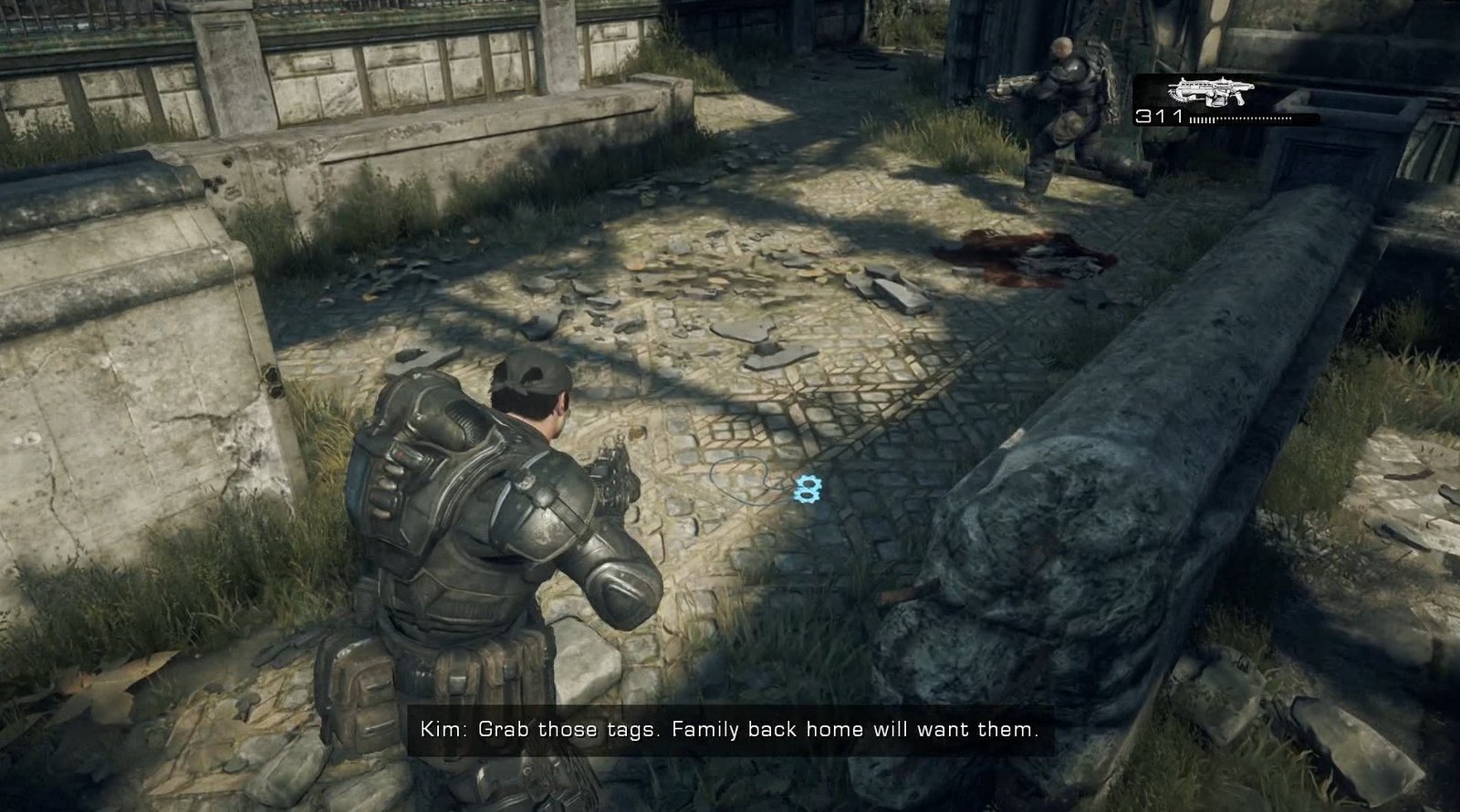 After the Berserker kills the soldier, head to this location and pick up his Cog Tag.