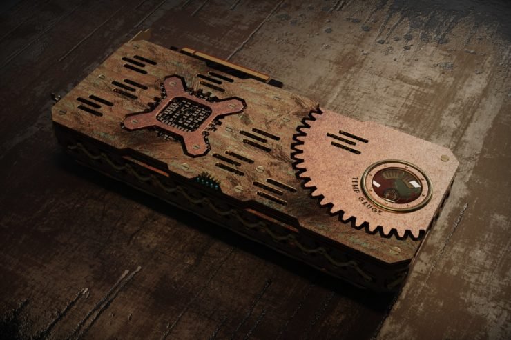Here we have another Intel Xe graphics card concept but this one has a steampunk theme. The card has three fans and looks very cool indeed. It is highly unlikely that this is going to be what the card looks like at launch but it still looks amazing.