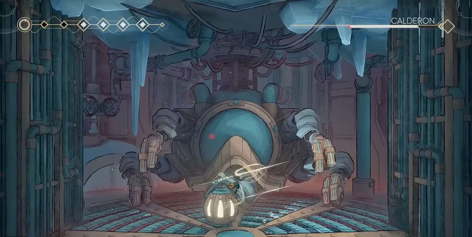 Calderon’s attacks track your position, which means panicked dodges can sometimes make things worse. Walking away from danger often works better than reacting too quickly.