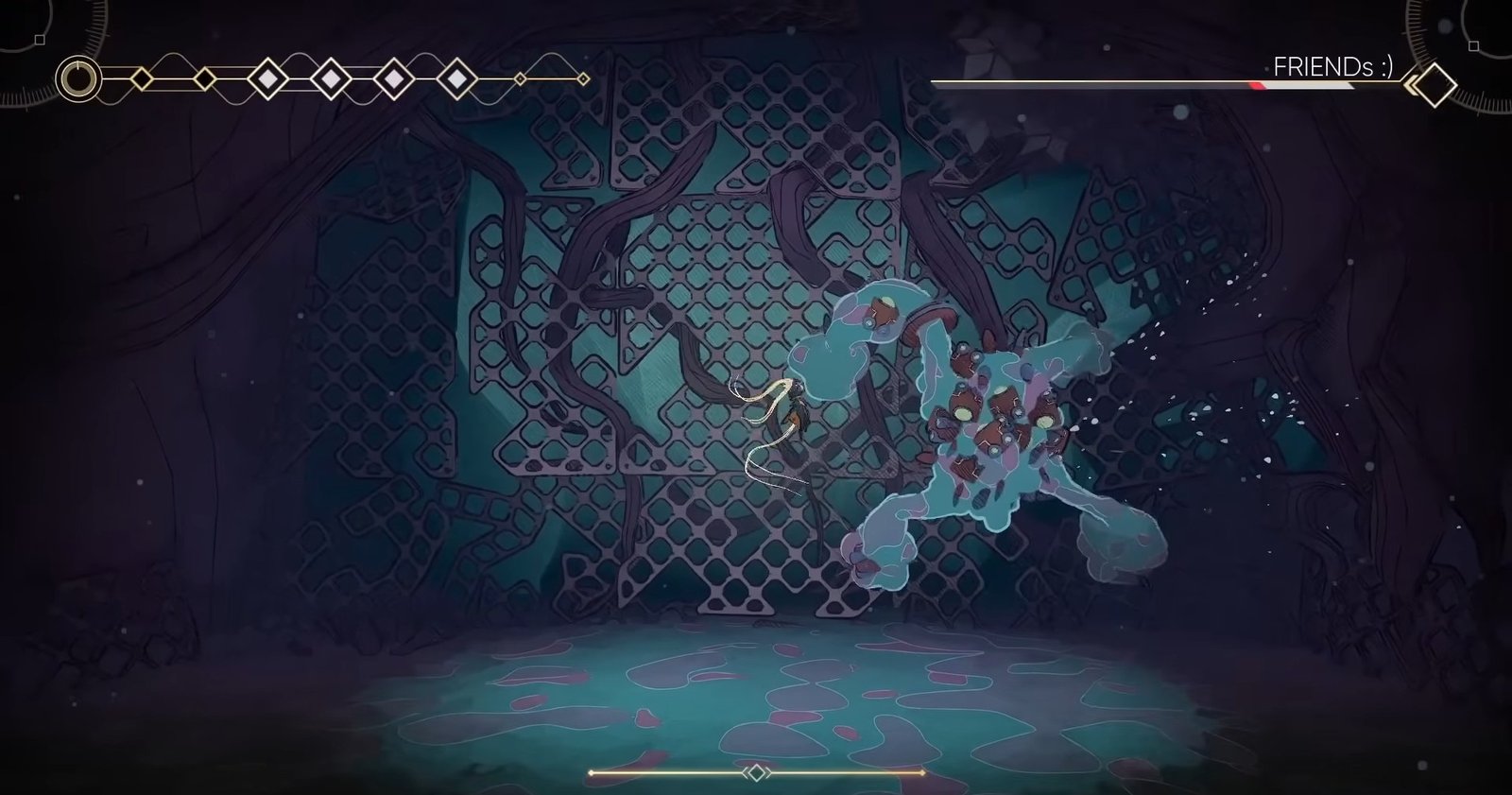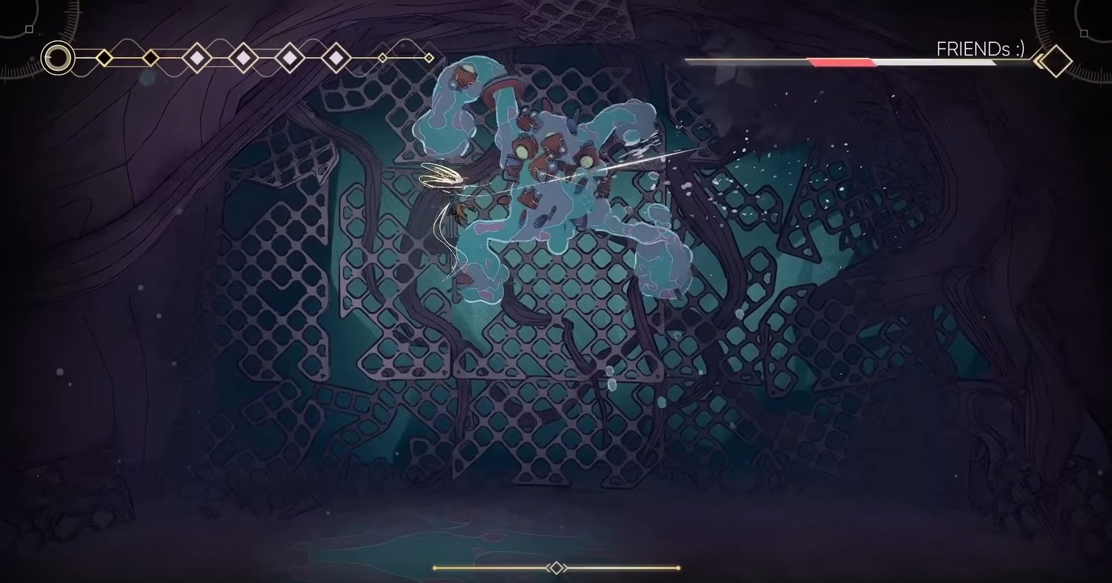 One of Friends’ common attacks involves shaking its body and firing sticky ball-shaped projectiles outward in all directions. This can quickly fill the screen and feel overwhelming. To avoid taking damage, move away from the balls as they spread outward and give them space to pass. Keeping calm and moving carefully is more effective than reacting too quickly.