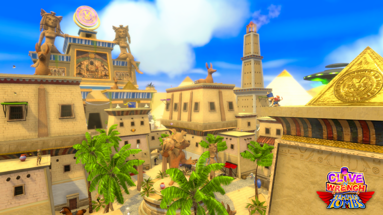 - Space-defying locations! – Clive ‘N’ Wrench features 11 distinct levels as well as boss battles and a hub world. Your adventure will take your all the way from the prehistoric ice age in Iceceratops, through ancient Egypt in Tempus Tombs, and even all the way through to the old west in The Chimp, The Bag, and the Bunny.