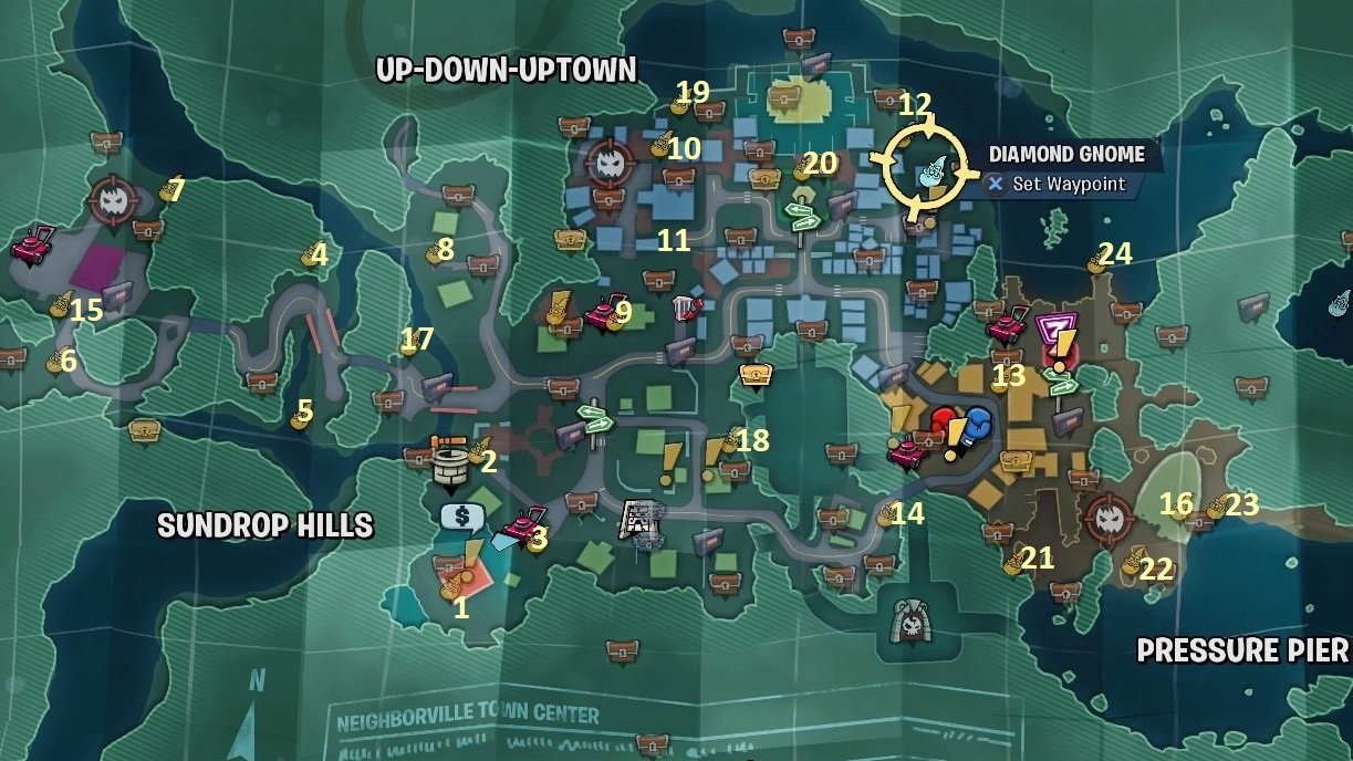 We have also provided a map location of all the Golden Gnomes and detailed their exact location in the guide below. Each numbered location highlighted on the map has its detail in the guide. Just refer to the number and go to the location as shown on the map.