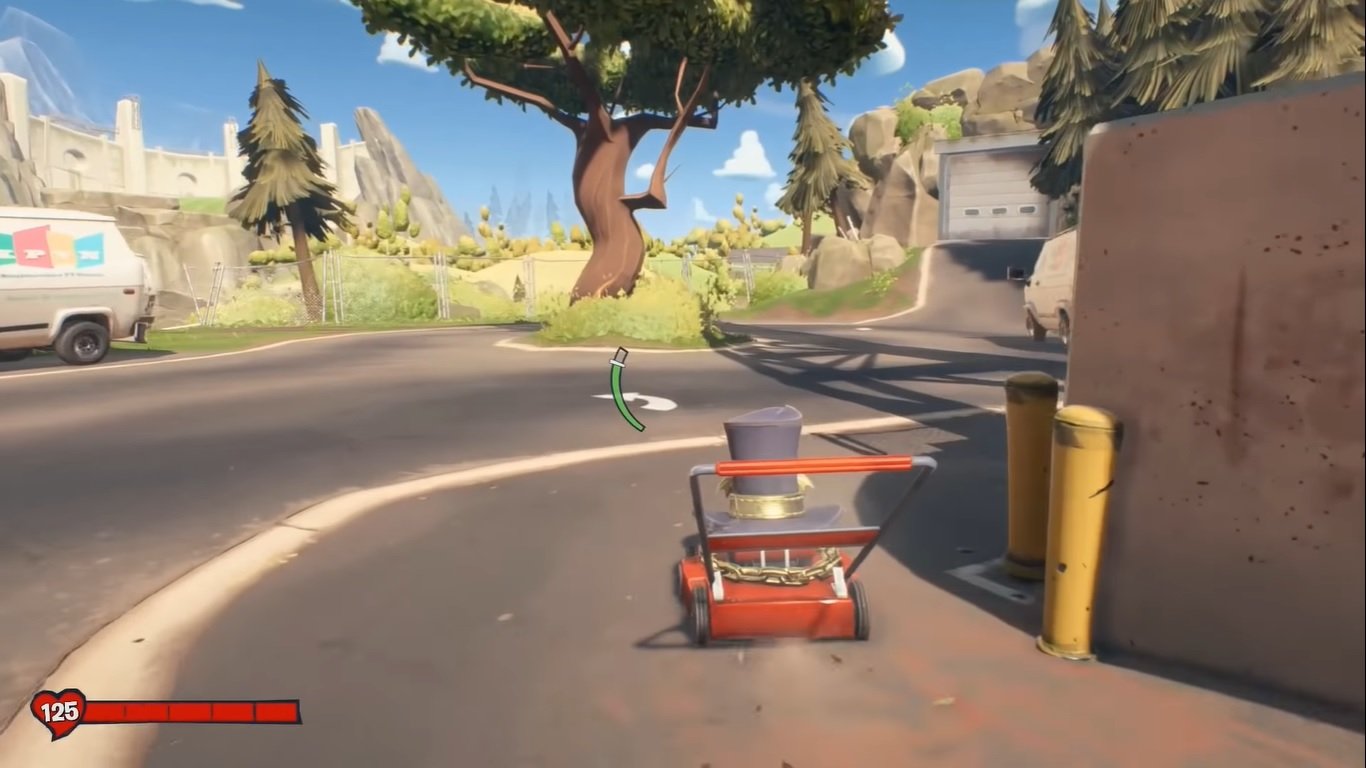 Now you need one of the players at the lawnmower, while the other player stays at the bounty box. The player with the lawnmower has to stay in the spot shown below. This is where the enemies spawn and are weak to the exploding lawnmower for the first couple of seconds.
