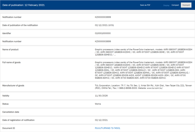Previously, both Gigabyte and ASRock had submitted the Radeon RX 6700 series graphics cards at the Eurasian Economic Commission and now PowerColor is also getting approval for their cards. PowerColor has submitted over 20 models to EEC which consist of both reference and custom models.