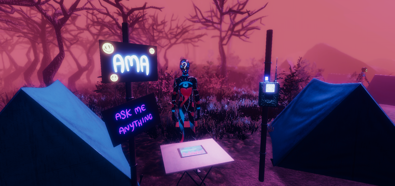 Your goal is to maintain your sanity as sinister beings hunt you from the shadows. Using an in-game smartphone app mechanic, you must solve challenging puzzles, survive the sinister shadows, and connect with other ravers in order to escape from the neon-drenched woods alive. As you can see in the trailer, it is truly a unique kind of experience.