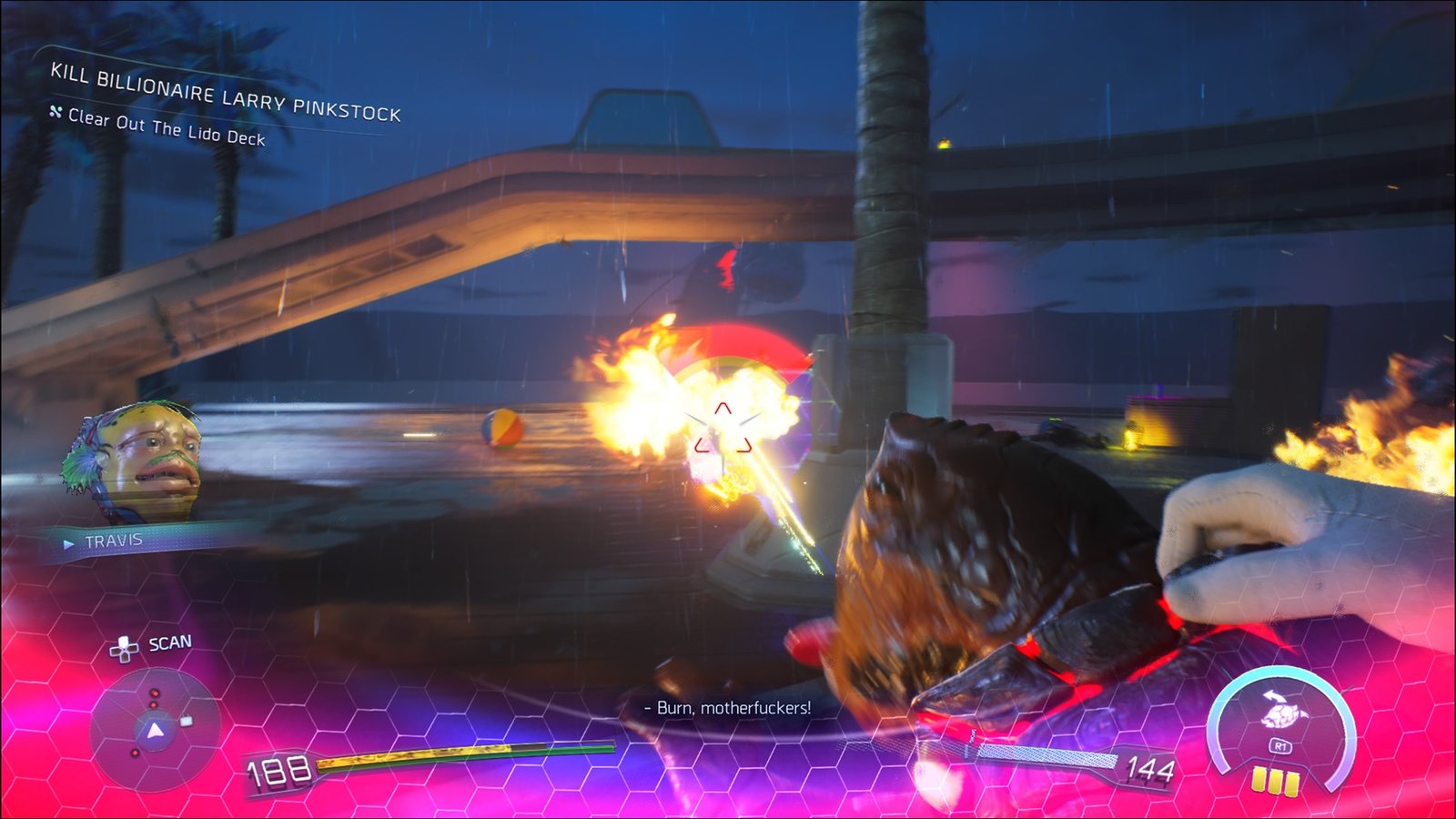 Travis, another new addition, is also a solid addition to the game, as it allows players to juggle their enemies after launching them in the air. Use its special on a group of enemies, and you will juggle them as long as you can keep hitting them. The rest of the squad is pretty much the same, but these feel more grounded this time around. Gus feels meaty for a shotgun, and the autopistol Sweeney packs a punch, too. You can further enhance their damage output through upgrades, which I found to be much easier this time around. The shop is also in a single place, in your hideout, so buying new upgrades is much more convenient now.