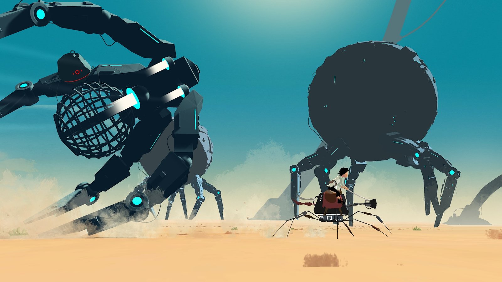 After acquiring the bracelet, Mui can use the power to control these wildlife creatures and from that point onward, you will need to use them for solving puzzles as well. There will be instances where you will use Mui to control a worm with a giant bag-like body that can suck rivers dry or fill them back with water in order to move ahead. In one instance, I got the boar-like creature killed by an alien drone in order to use its body as a weight and placed it on a switch to trigger a platform and move forward. There is also one insanely cool scene where we use a huge creature to cross a large gap which was followed by an intense mind-control quick-time event battle. There is also one cool chase through the desert where you are on a robotic creature running for your life with the killer aliens chasing you. The whole scene is the highlight of the game, and it is a quick-time event as well. To my disappointment, the scene was a little short, and right from the start of the game, I was really looking forward to it since it was shown in the trailer as well. I was expecting it to be a little long. Still, even with its short length, the chase scene is excellent and really shows the amazing visual design of Planet of Lana in action.