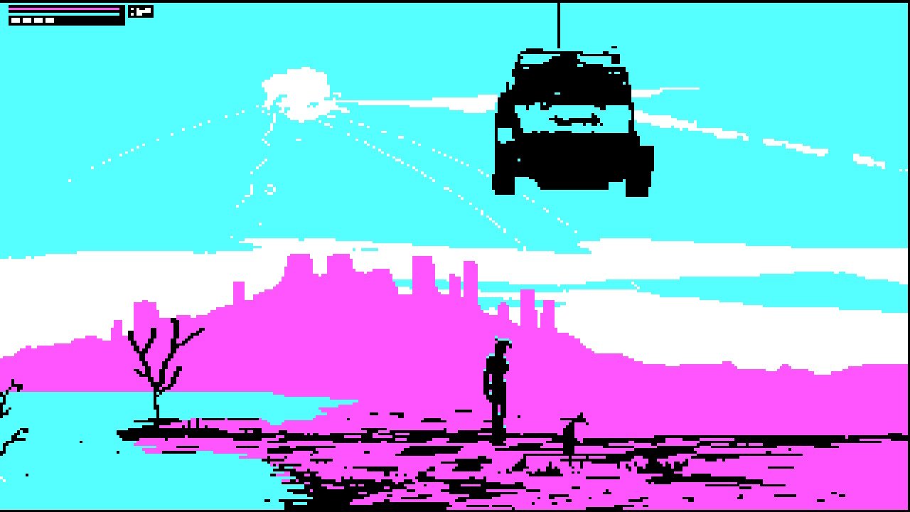 Right after you begin playing The Eternal Castle, you will notice the unique art style of the game. Nothing is clear on the screen, and everything can only be recognized by sheer outlines or reflections of them as the colors shift from one to another. This unique art style is known as 2-bit CGA color where only four colors appear on the screen. This is not a very common practice these days for making video games, and as far as I can remember, The Eternal Castle is the only modern game to ever use this color scheme. This makes levels a really unique challenge to navigate through on their own.