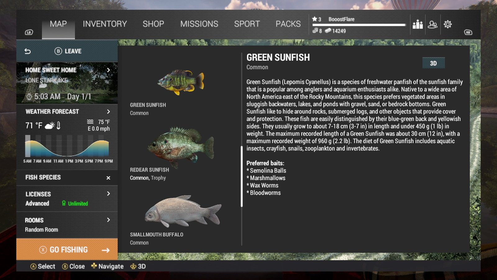 The locations are of pretty decent size and you can explore them. If you are lucky, you will sometimes find resources such as worms or other items in compost piles and such. This gives a nice incentive to players who explore a little off the beaten path. You have the freedom of fishing anywhere in the lakes however sometimes you will need to be specific with your locations if you are looking for a specific fish. The in-game fish index gives you all the information about each and every fish that you must be aware of such as the best time to look for them and best bait to lure them in. You cannot really remember all the information so it is best to check with the index often to know more about the fish.