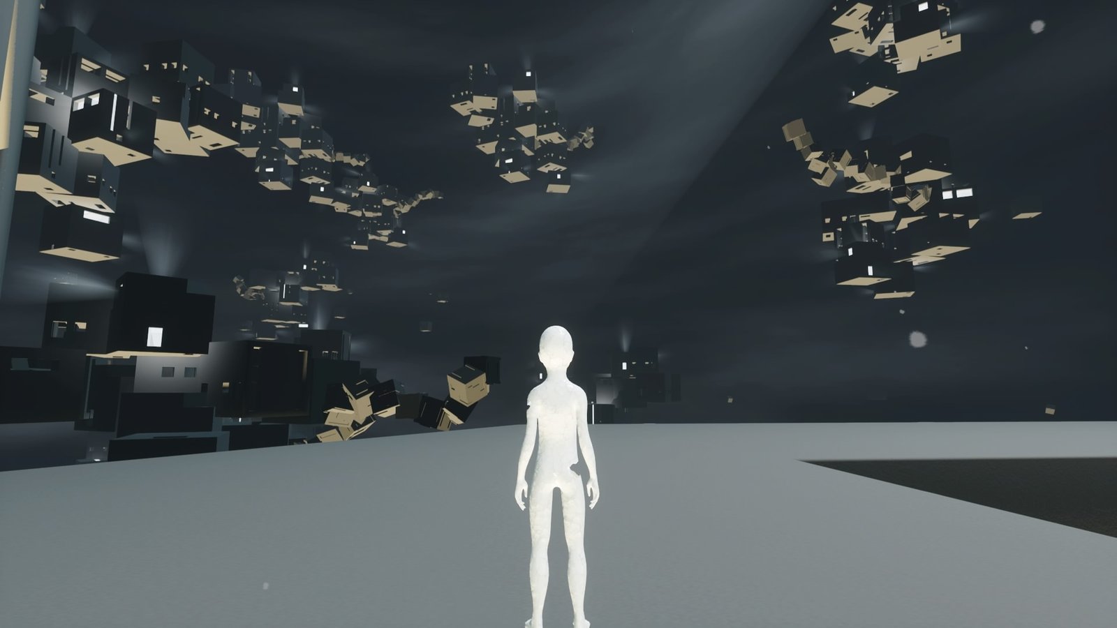 A crack on the wall makes it pretty obvious that you are supposed to go inside it. Lo and behold, you run through this tunnel and exit out into a dreamy world with multiple buildings floating in the sky, while you can control the boy to fly and land over any of the structure. Inside every building or structure is a square white portal on the floor. The portal looks very inviting and will then take you to your childhood memories. In this case, it is one of the first fears of the boy. I quickly learned that you don’t need to worry about which building or portal to enter, as the story is linear and it will take you to where it supposed to go, no matter which portal you choose.