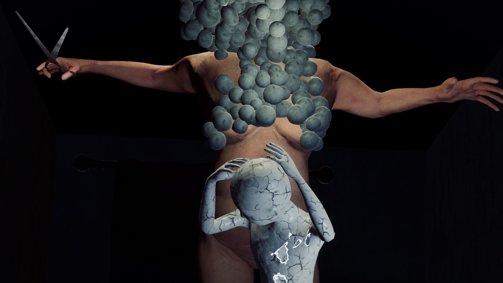 To begin with, the game is quite minimalistic as there is nothing to say, nothing that points at what to do, nor where you are supposed to be heading. The initial cutscene shows a man lying in bed and either quivering in pain or having a nightmare in his sleep. The cutscene transitions to you, as the protagonist, who is a small mannequin type looking child, with cracks all over his body, indicating how broken he is. This boy spawns in a room, which immediately gives a hint that it is your room, and that you are just a ghost in it.