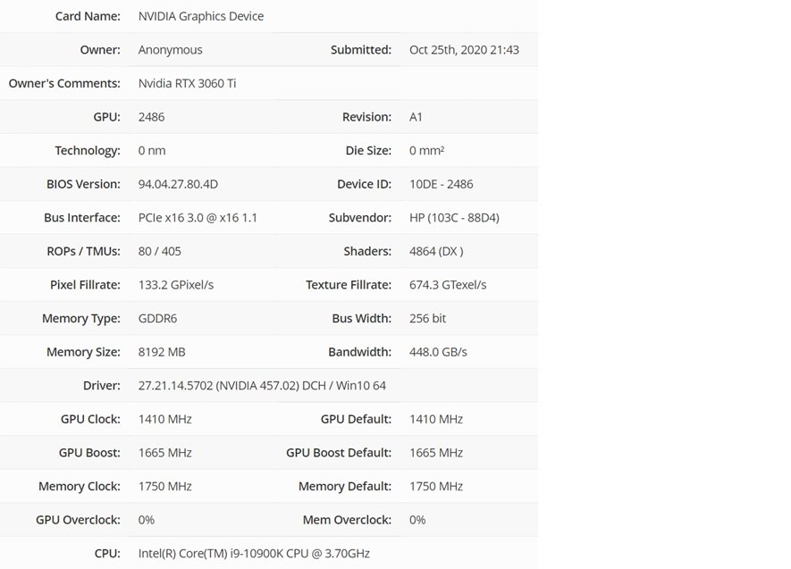 According to different sources, these numbers are on stock speeds so we can increase higher GPU Clock and Boost speeds in overclocked third-party variants. The NVIDIA GeForce RTX 3060 Ti is currently an unreleased graphics card and NVIDIA is most likely going to announce the GeForce RTX 3060 Ti sometime after the GeForce RTX 3070 in November with availability expected either during next month or by early December.
