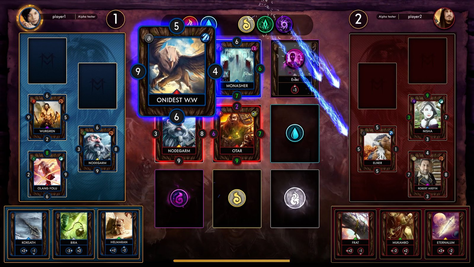 The card game is unique in the sense that players must use totally exposed cards and two decks: one of 20 Creatures and another of 20 Equipment. Every match will be completely different from the first, all thanks to the countless creature abilities, equipment, and elemental powers that are found on the game’s board.